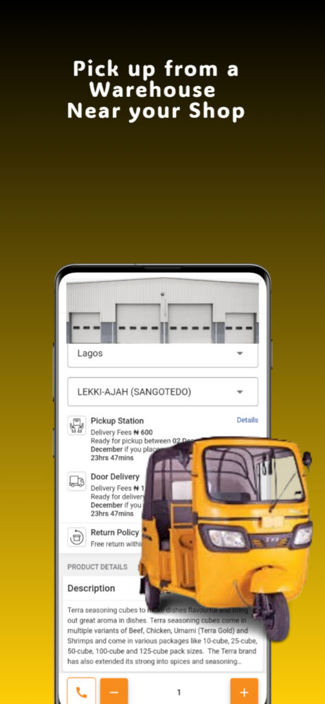 The place where you go come pack your goods dey close to your shop, na within the Local Government Area where your shop dey. Chatter KeKe or motor come depending on how much goods you request for.