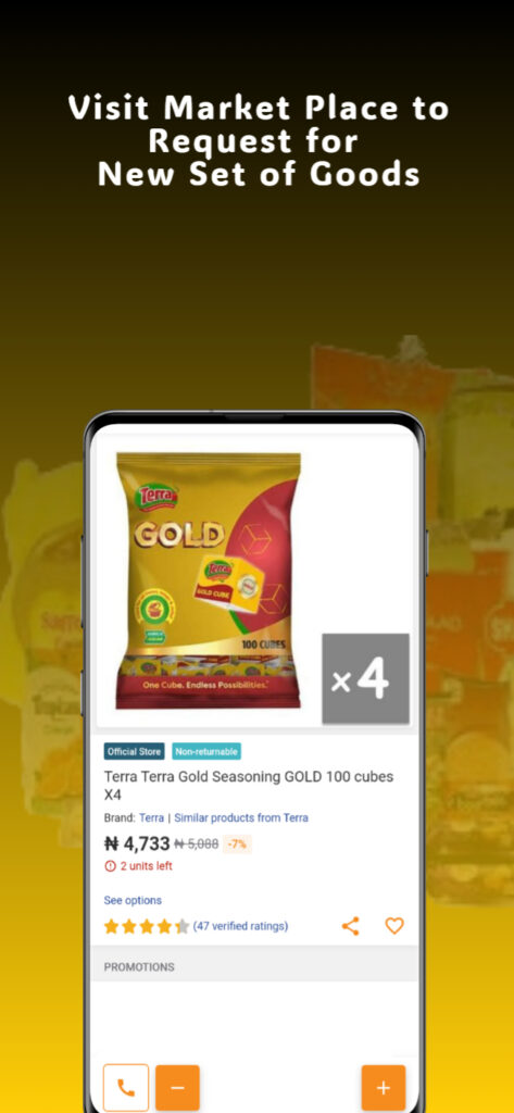 Enter marketplace ontop our app to begin request all the goods weh you go lIke come carry, no hidden charges, na all wetin you dey sell dey for our marketplace.